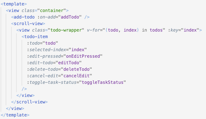 Je kan deze dan aanroepen zoals je zou doen in HTML. bv. <view class='todo-wrapper">.